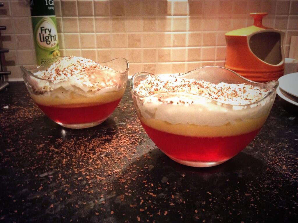 When we were ready to eat them I topped with Anchor Light Squirty Cream and grated some Tesco Value chocolate (1 square) over the two of them. If you grate it on the smallest grater setting it will spread more and you feel like you get more.